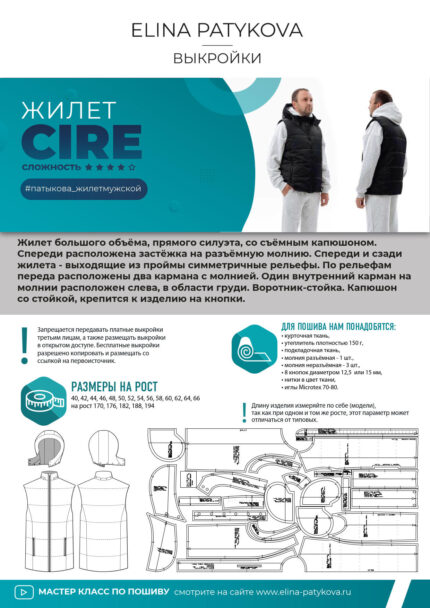 Жилет «Cire» (мужчины) печатная выкройка