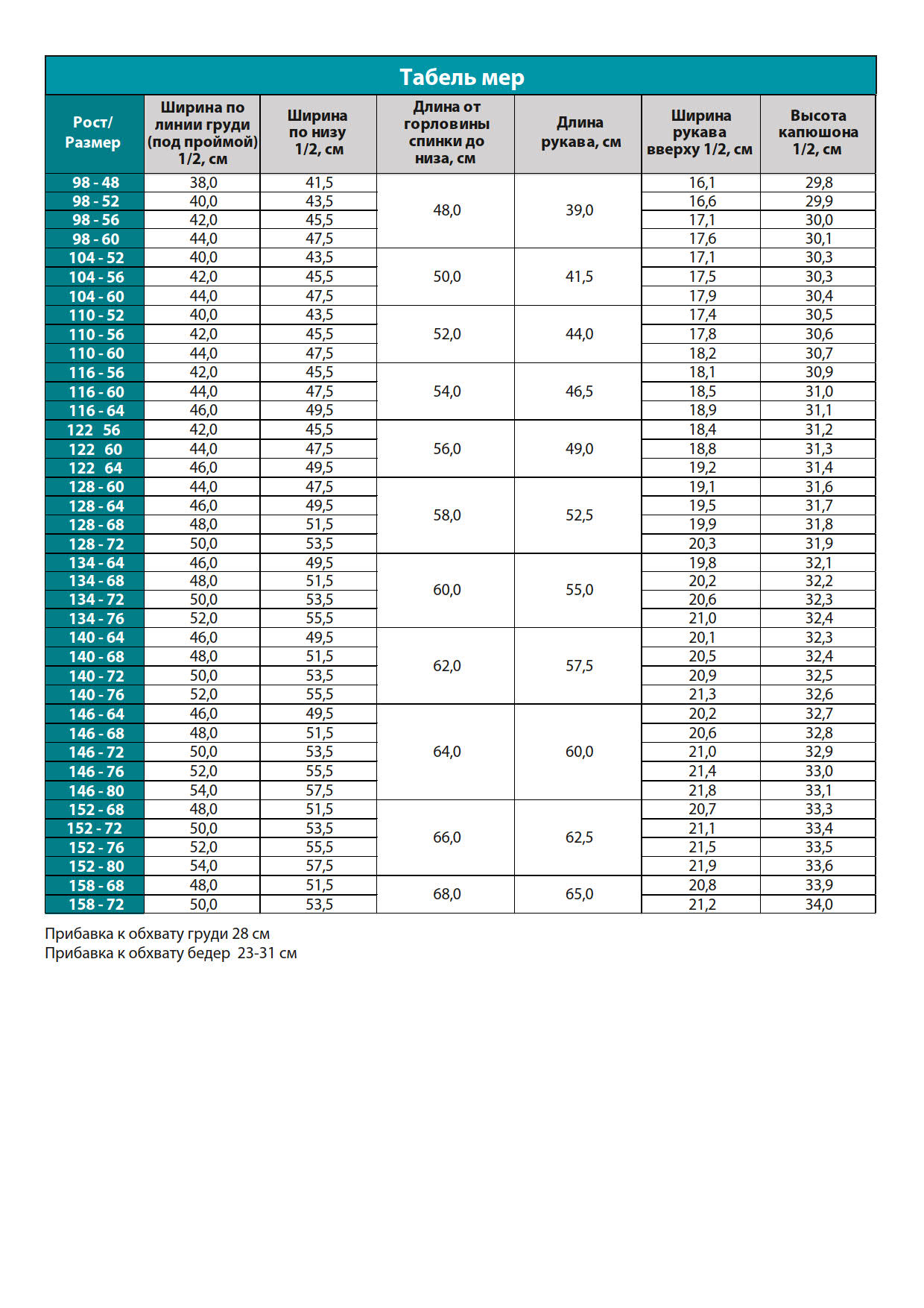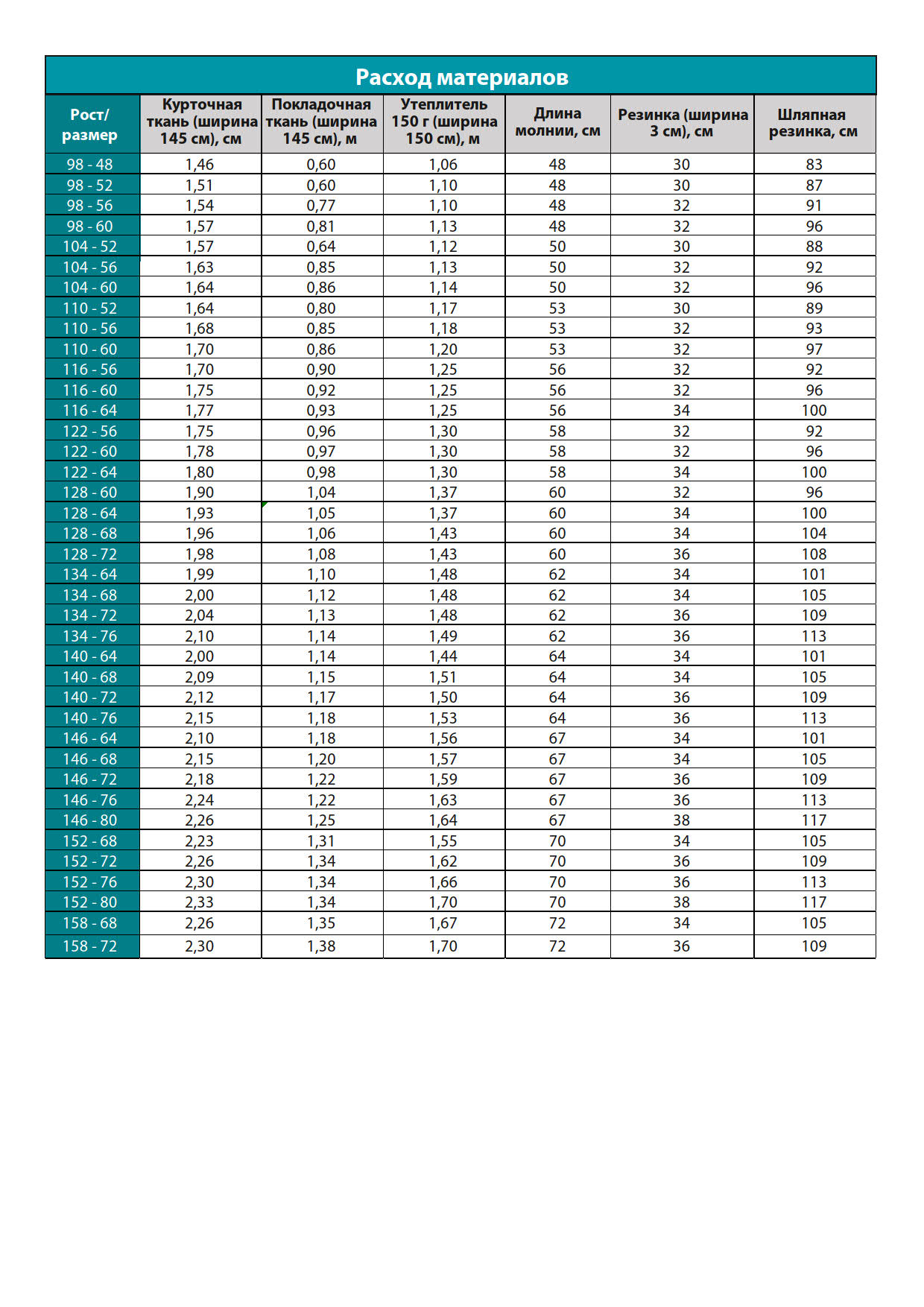 Нужна печать выкройки? Выбирайте нужный рост и размер