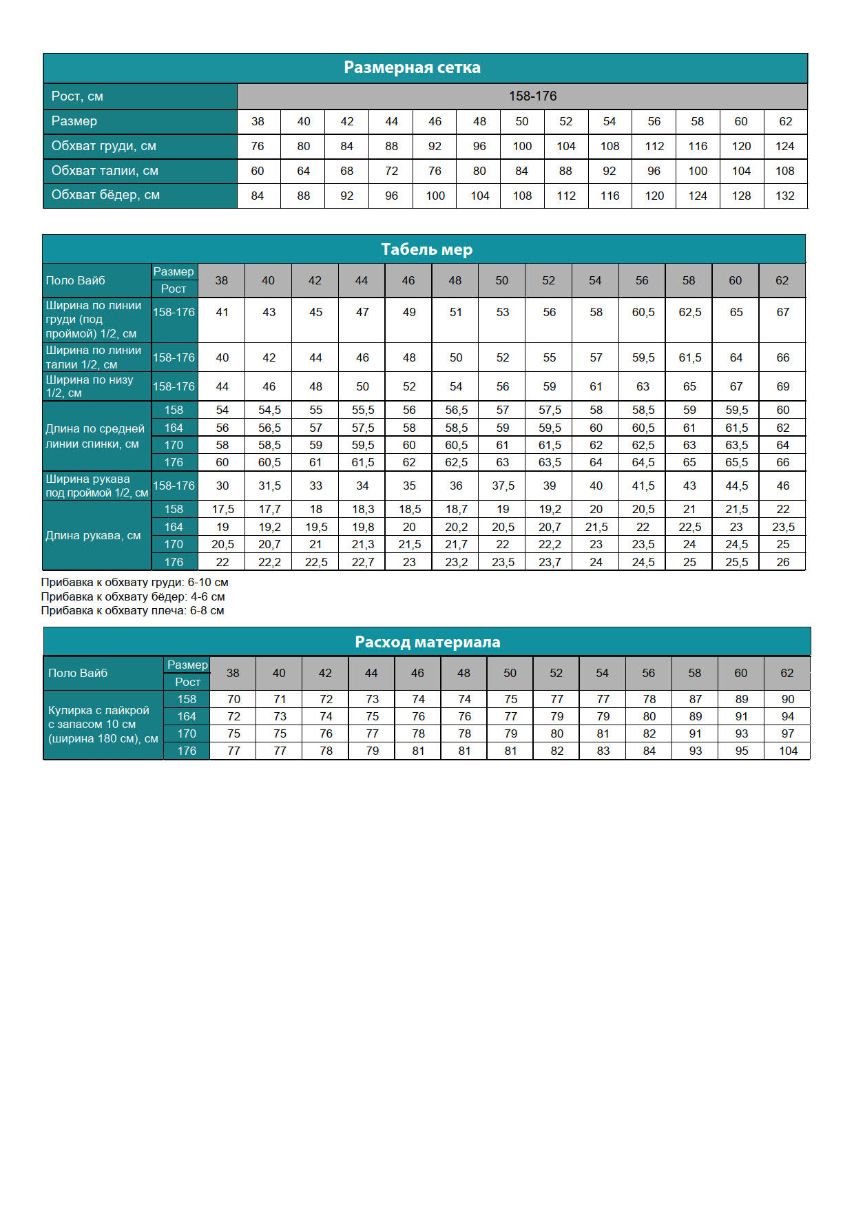 Нужна печать выкройки? Выбирайте нужный рост и размер